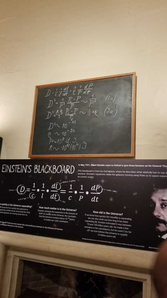 La primera parada no fue en Cotswolds, sino en Oxford. Fue breve y un poco caprichosa. Queríamos ver el pizarrón que escribió Einstein durante una conferencia en 1931 y que hoy se conserva en el Museo de Historia de la Ciencia. No es un objeto espectacular, pero esos trazos de tiza encierran historia. Para los que no lo sabían, además de diseñadora de viajes, soy bióloga y me apasiona la ciencia, así que cada tanto me van a tener que perdonar estos desvíos nerd.