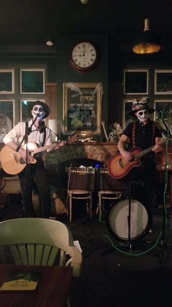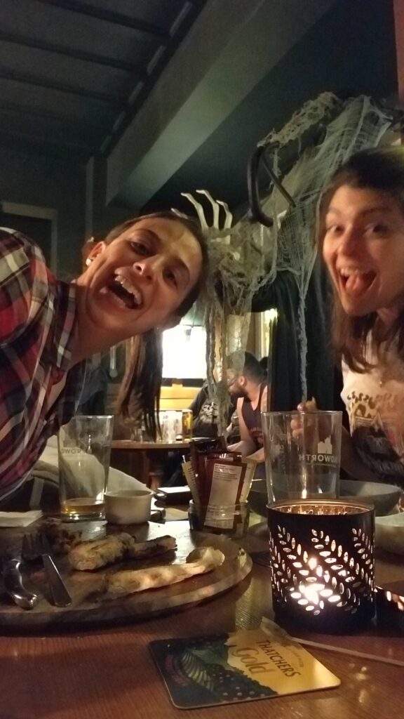 Esa noche el viaje dio uno de esos giros que no se planifican: terminamos en una fiesta de Halloween en un pub de Gloucestershire. El ambiente era 100% local, todos entraban disfrazados, saludaban al barman y a los mozos, quienes comentabal los disfraces de cada cliente. Cenamos, tomamos cerveza, escuchamos música y bailamos.