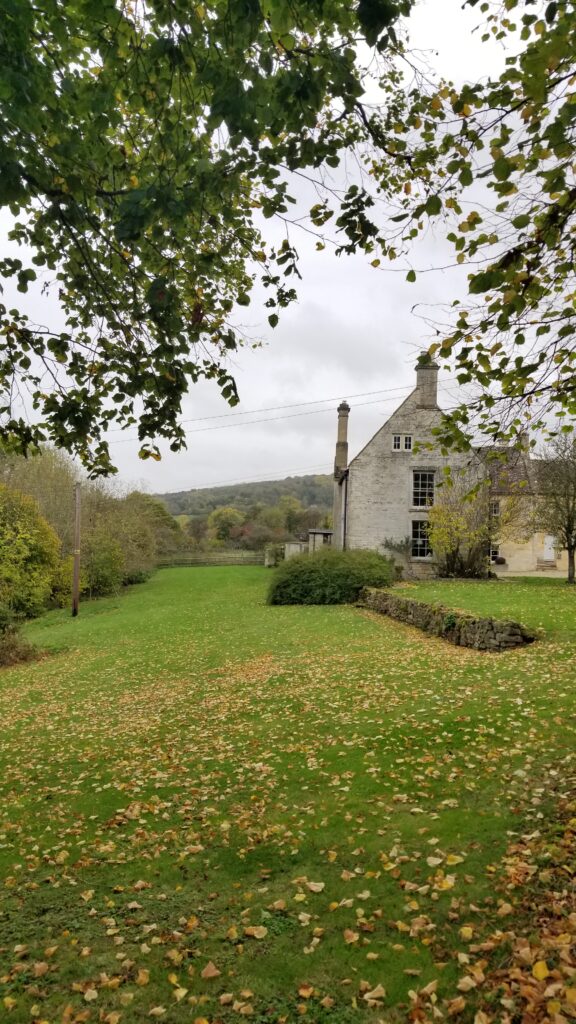 Desde ahí fuimos a Sudeley Castle. No entramos al castillo pero lo vimos desde afuera y recorrimos los jardines con senderos húmedos entre muros de piedra, rosales en otoño y vistas abiertas a la campiña. El castillo, con casi mil años de historia, fue residencia de Catalina Parr —la última esposa de Enrique VIII—, enterrada en la iglesia del predio. Se siente más íntimo que monumental, muy en sintonía con el paisaje de los Cotswolds.