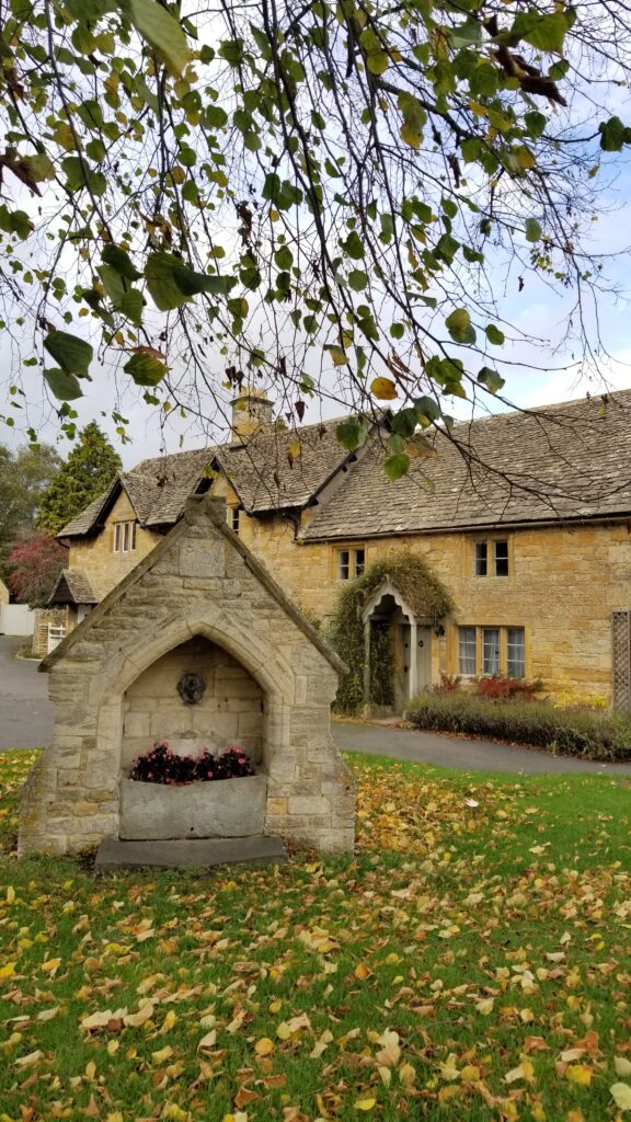 Ya al mediodia seguimos hacia Stow-on-the-Wold, uno de los pueblos más grandes de la región. Bajamos del auto y recorrimos a pie la plaza amplia, visitamos tiendas antiguas, y la iglesia de St Edward con su puerta de madera flanqueada por troncos retorcidos. Stow-on-the-Wold fue nuestra última parada en los Cotswolds. La iglesia de St Edward’s, con su puerta de madera enmarcada por árboles retorcidos, parece salida de un cuento. A esa altura el roadtrip ya era eso: enlazar pueblos por rutas rurales, sin checklist ni apuro.